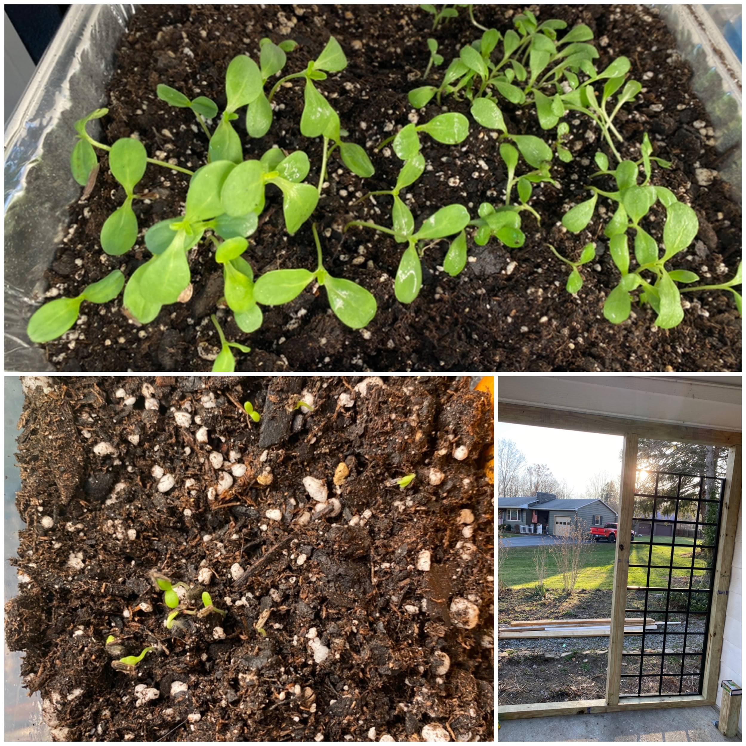 Today was extremely windy, so I moved my winter sown seeds to the porch for protection and watered all the containers of seeds. Working on convincing mom to grow grapes as a privacy screen on the porch. She keeps changing her mind. Zinnia and scabiosa seedlings have been growing really well inside. Lettuce is germinating as well, hopefully in a few months, mom will get free lettuce from my plants.
